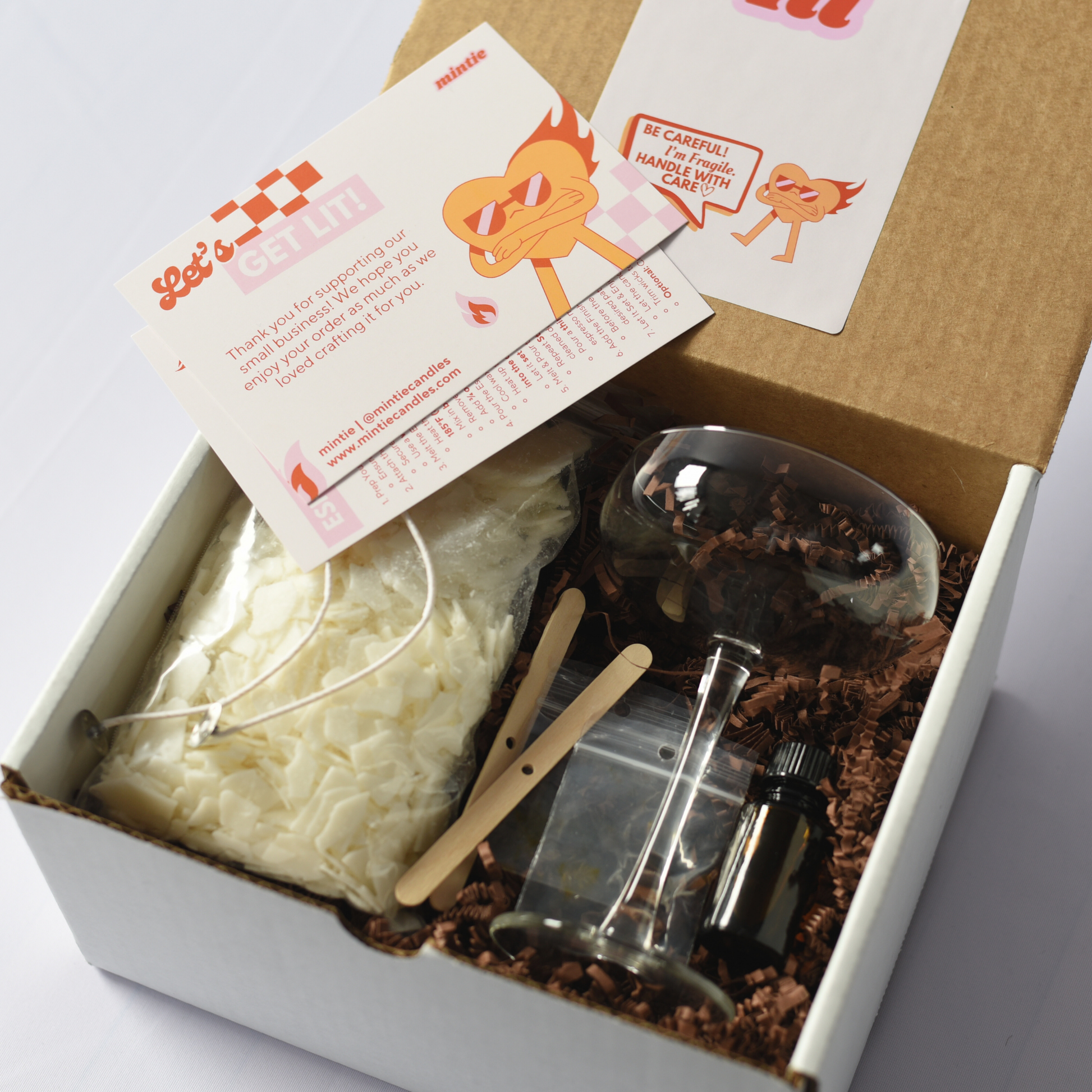 Two kit sizes available: one candle for a solo date, or two to create with someone special ♡